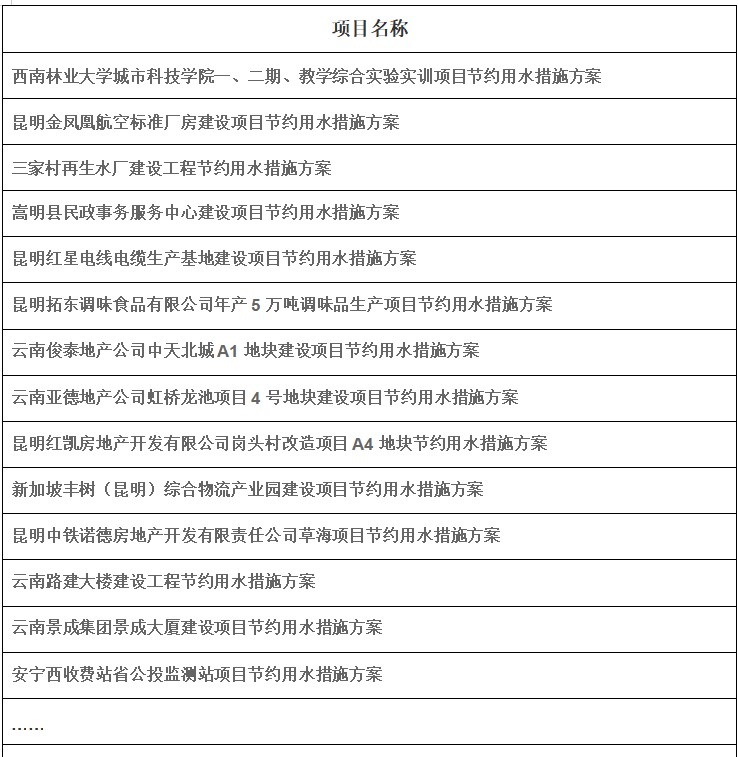 昆明市中心城區范圍內的新建、改建、擴建工程建設項目節約用水措施方案審查,其它區域由所屬縣(市)區負責審查。